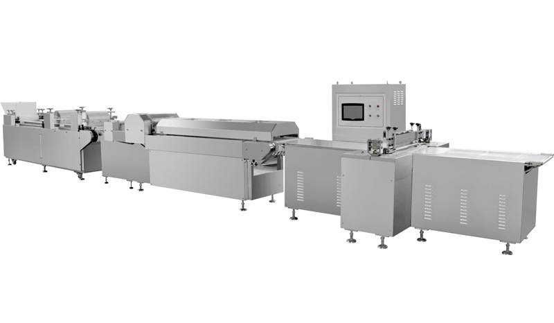 該機適用于以糖基為原料、經熬煮后工藝處理作粘接劑的混合谷物、果紅棒、水果條、營養棒等產品的成型。
