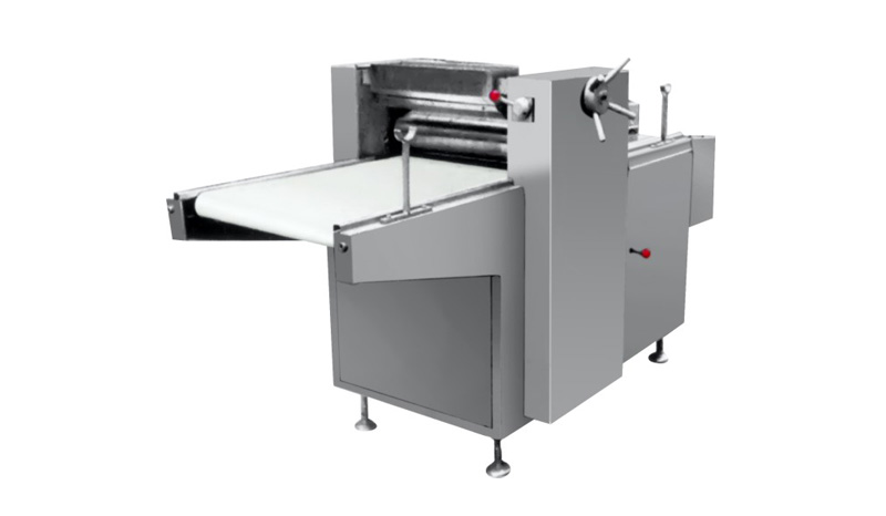 該機采用雙帶同步送料,自動灑粉,壓面厚度可調,條形粗細均勻,切割長短一致。適用于沙琪瑪、金果、江米條等面制品。