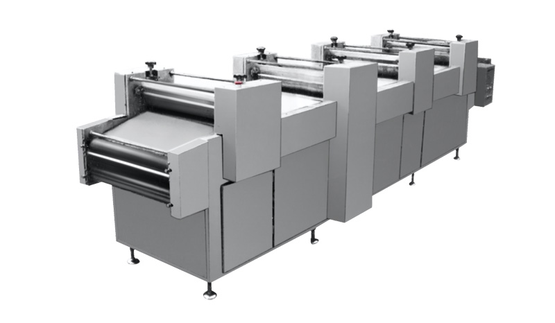 該機采用雙帶同步送料,自動灑粉,壓面厚度可調,條形粗細均勻,切割長短一致。適用于沙琪瑪、金果、江米條等面制品。